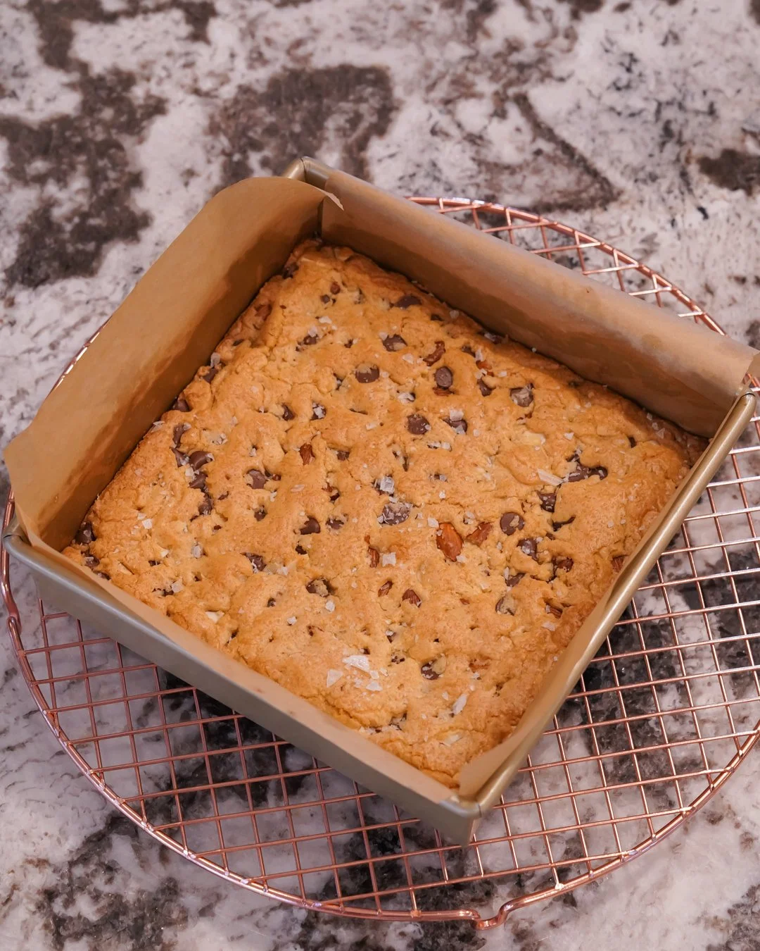 Enter these blondies. When you want the comfort of a good chocolate chipper, and the satisfying thickness of a brownie, a blondie is your best friend. Plus they require less ingredients and less effort than cookies - no spooning out batter, careful spacing, or batch baking involved.