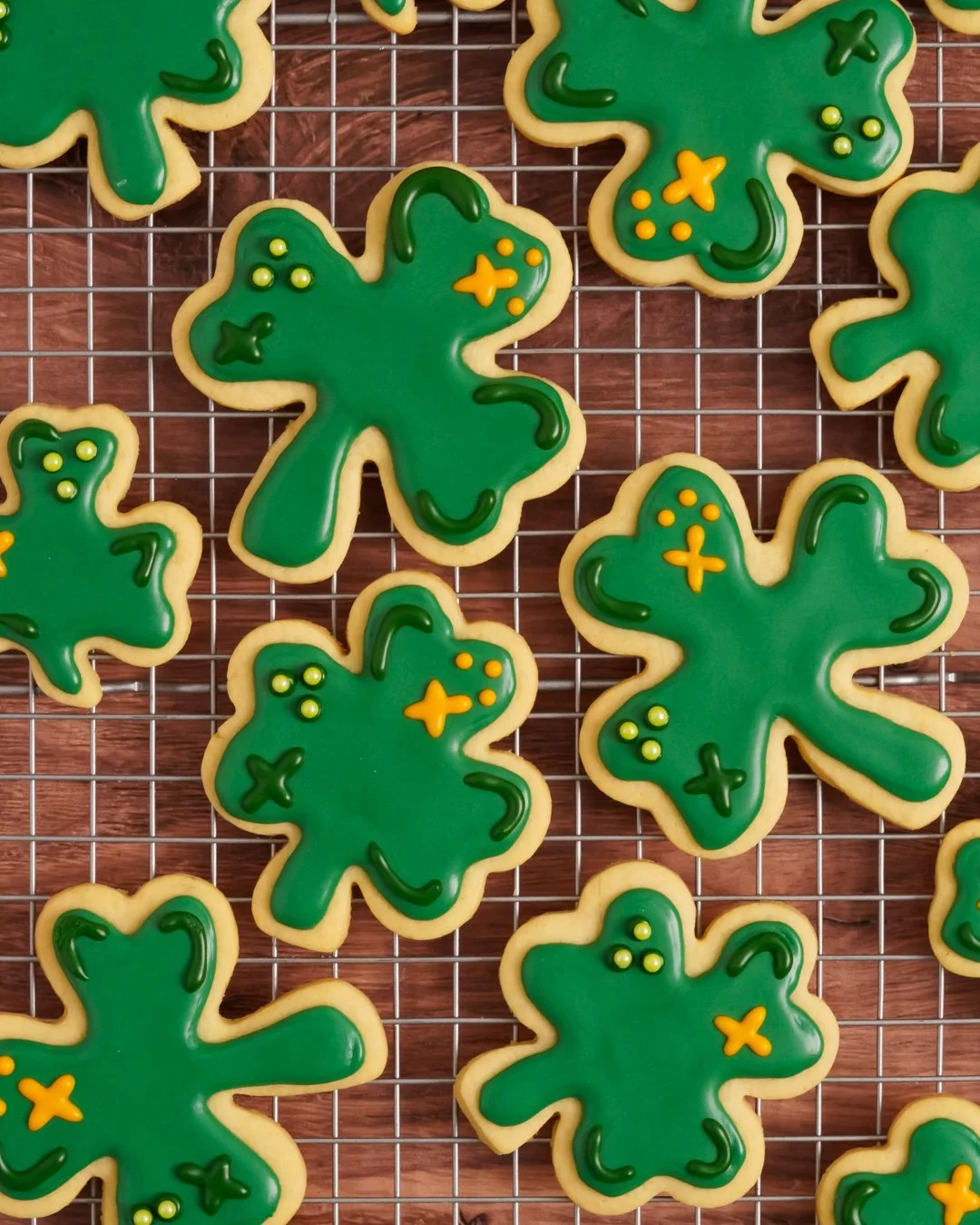 Allow the cookies to cool for a few minutes on the pan before transferring them to a wire rack to finish cooling. Let the cookies cool completely before decorating.